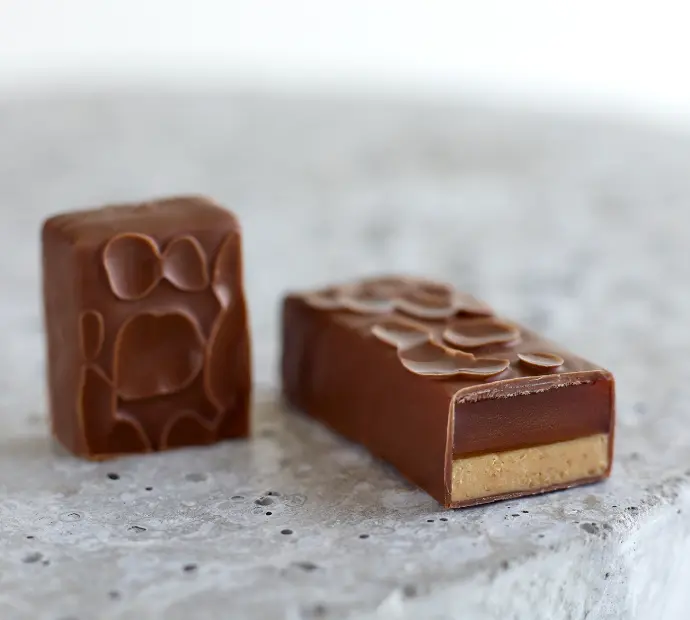 A milk chocolate with a pronounced cocoa taste and a fine touch of caramel.